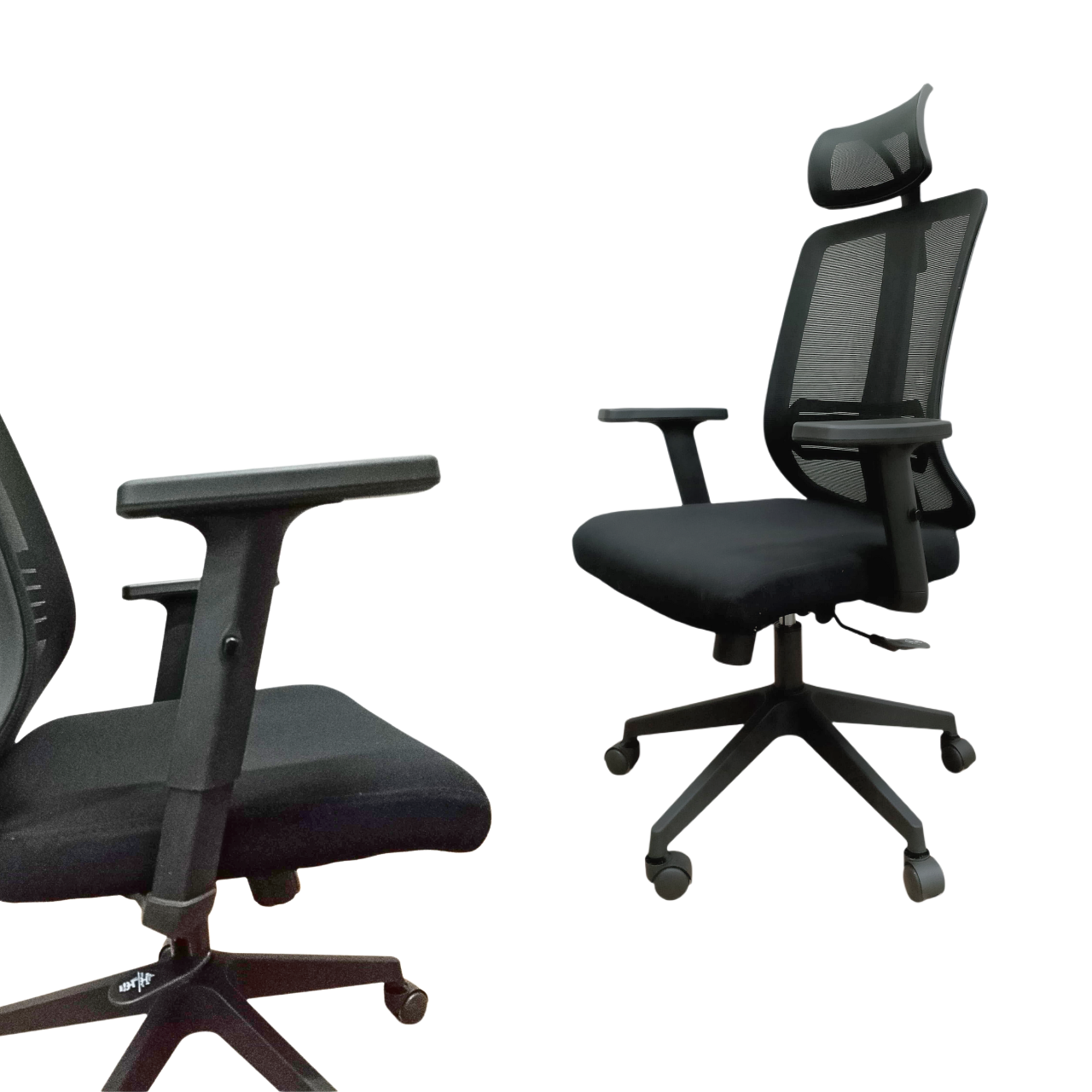 Cechy: regulacja podłokietników, regulacja zagłówka góra-dół, przód-tył;, regulacja kąta pochylenia całego; fotela i wysokości siedziska;, regulacja odcinka lędżwiowego góra-dół
