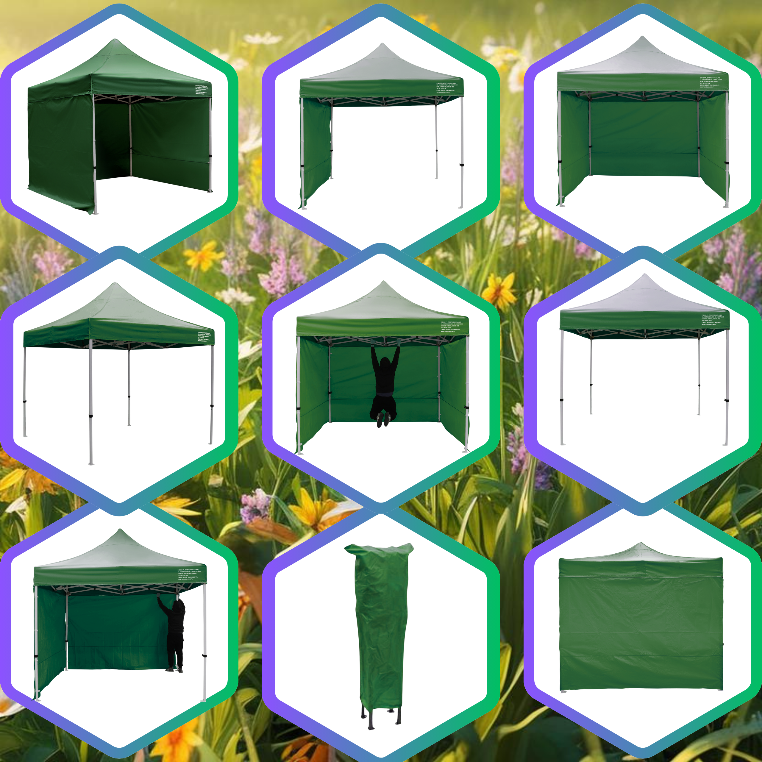 ✅ Personalizacja namiotu - istnieje możliwość wykonania nadruków na dachu oraz ścianach .