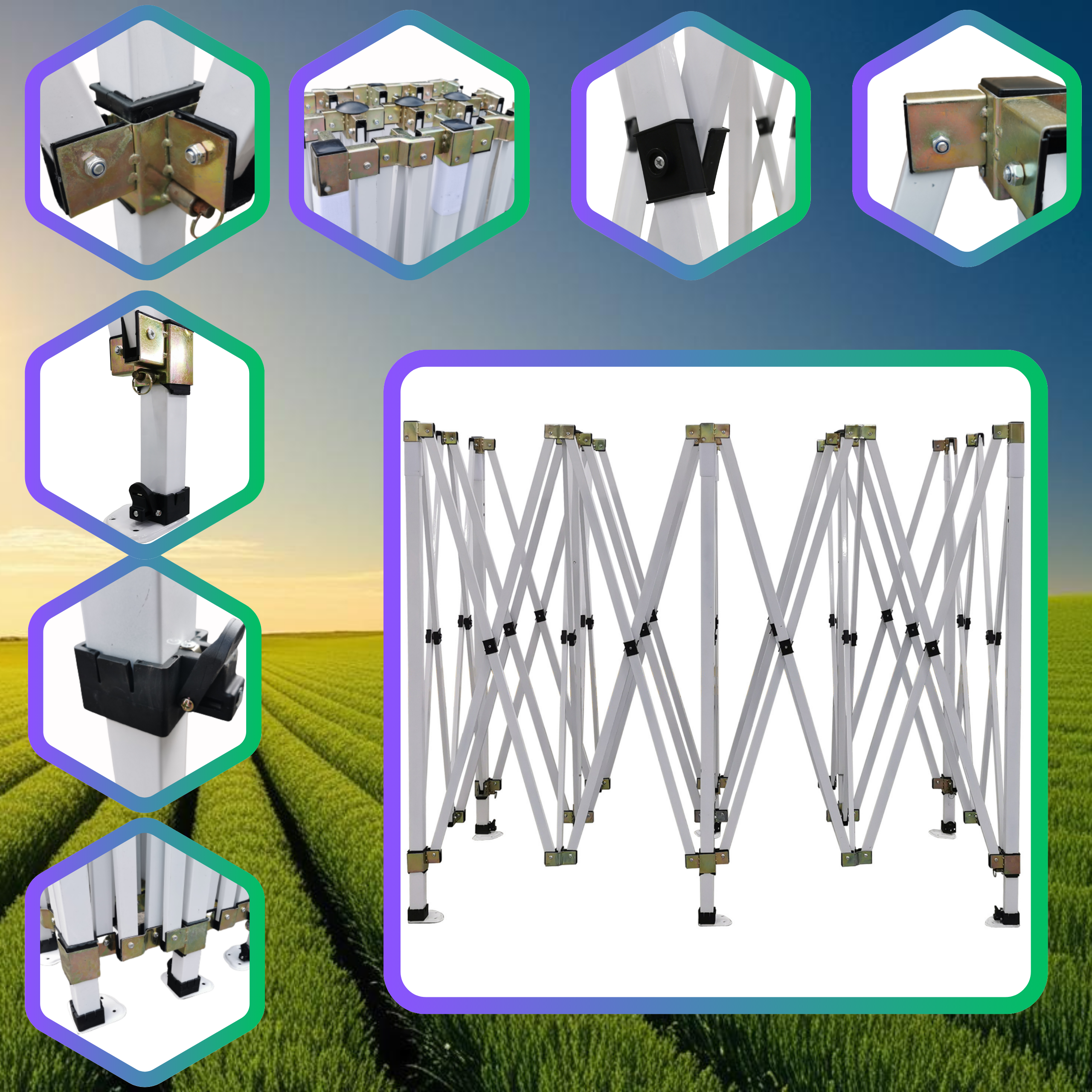 ✅ Konstrukcja nożycowa - umożliwia rozstawienie namiotu w zaledwie kilka minut. Rozciągnij stelaż, nałóż dach i przypnij ściany – gotowe do użytku!