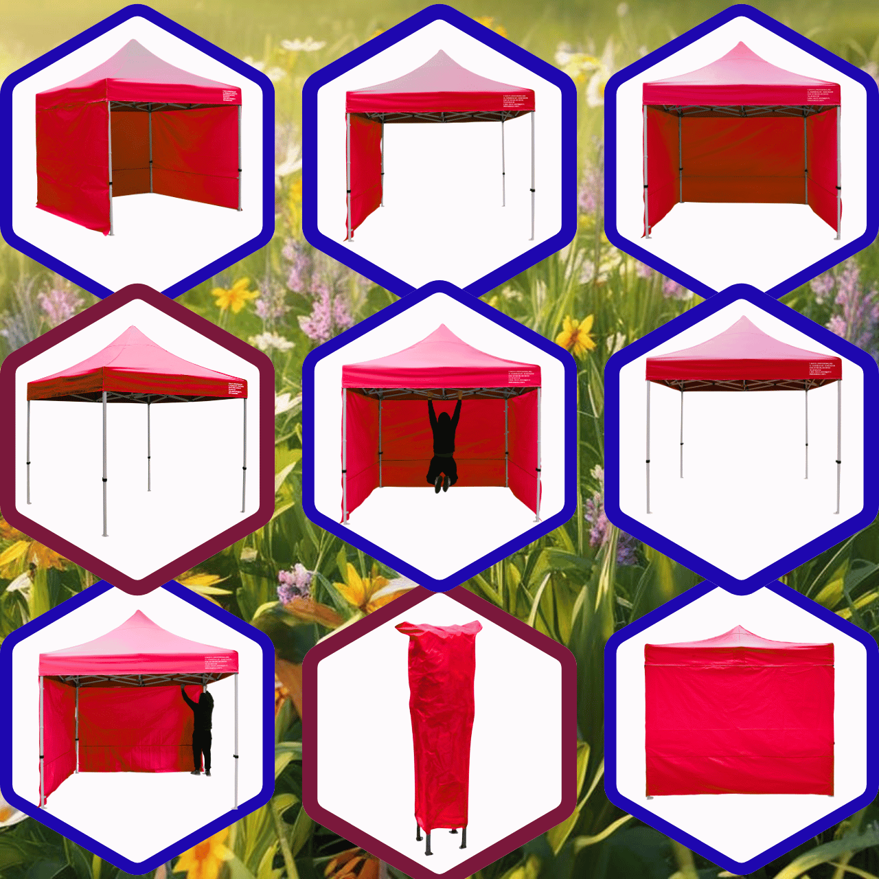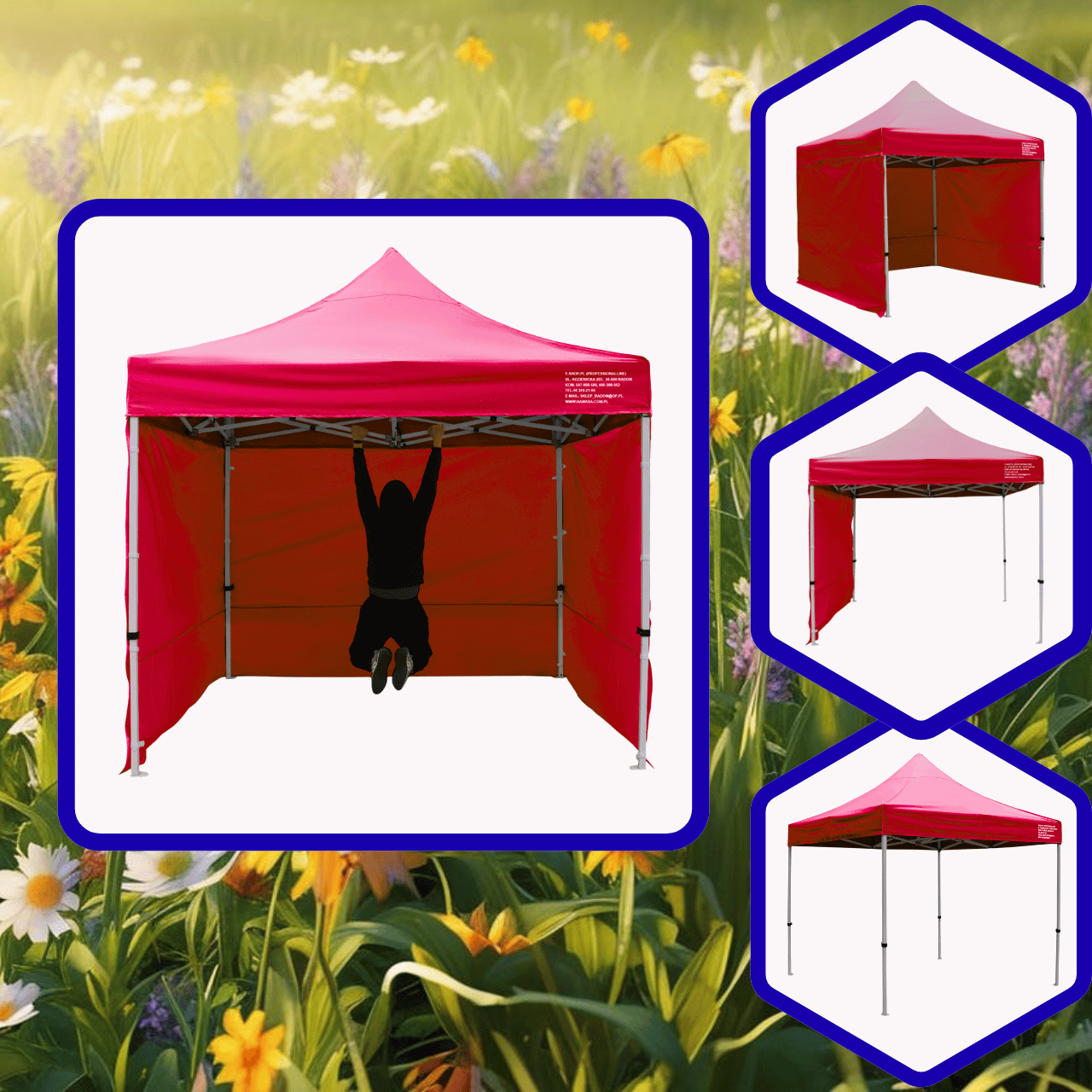 ✅ Personalizacja namiotu - istnieje możliwość wykonania nadruków na dachu oraz ścianach .
