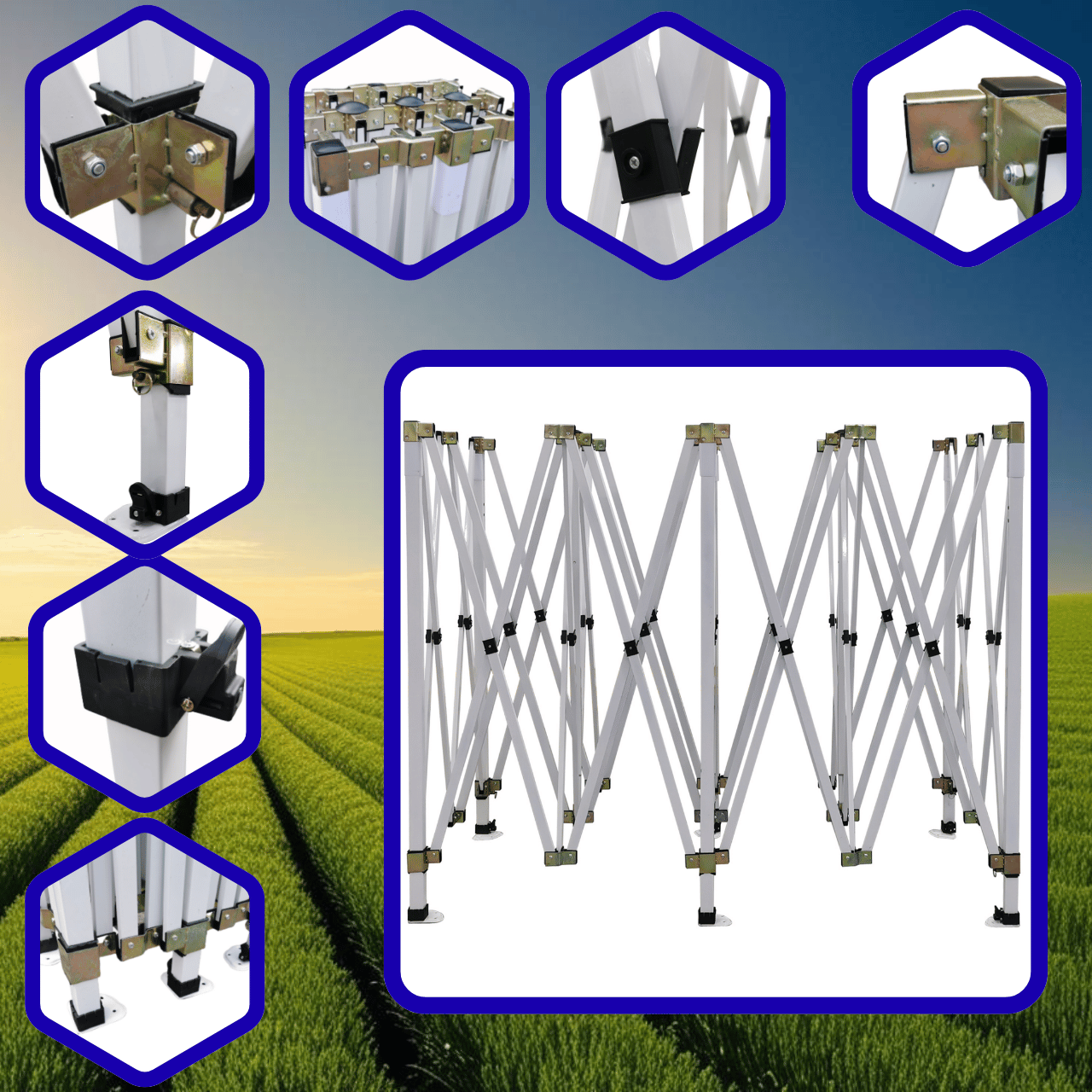 ✅ Konstrukcja nożycowa - umożliwia rozstawienie namiotu w zaledwie kilka minut. Rozciągnij stelaż, nałóż dach i przypnij ściany – gotowe do użytku!